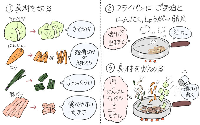 キャベツともやしだけあれば正直いいかなと思います。
