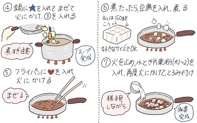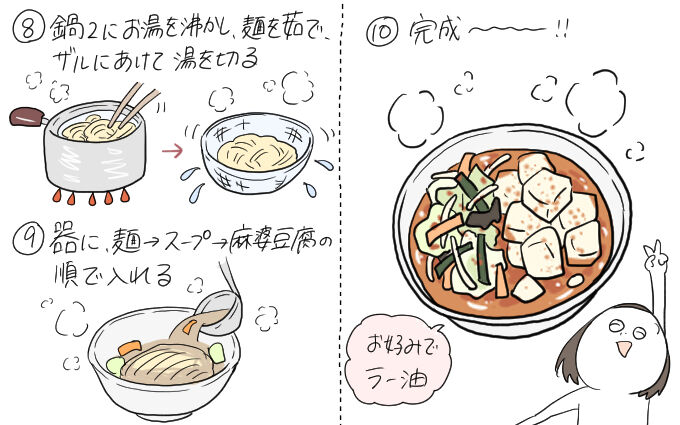 麻婆豆腐の辛みは、豆板醤や一味唐辛子、ラー油で調節してください。