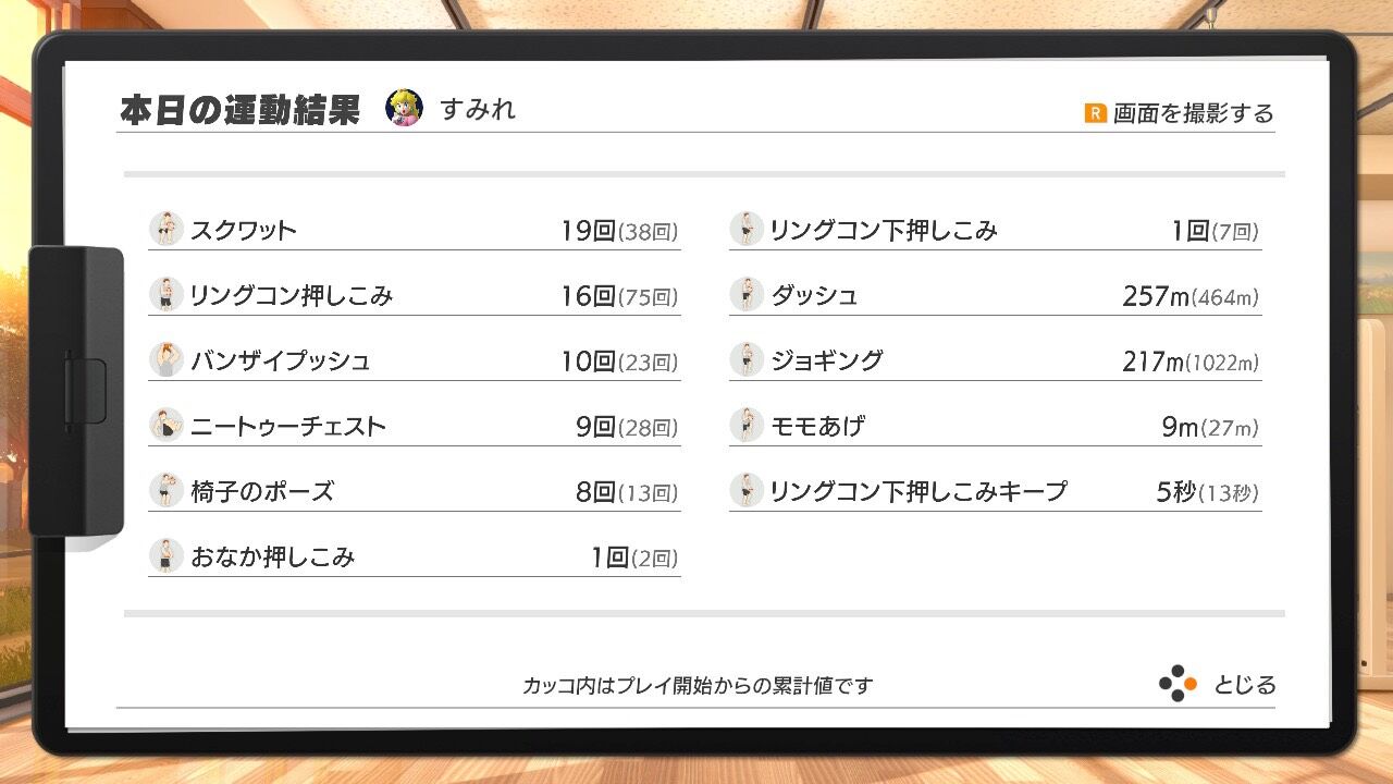 最後に、その日やった運動の結果が出ます。